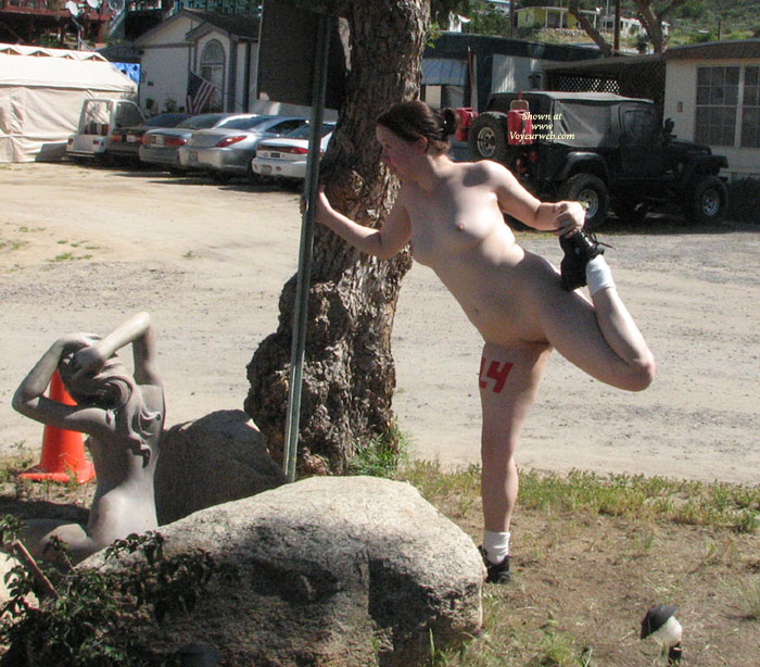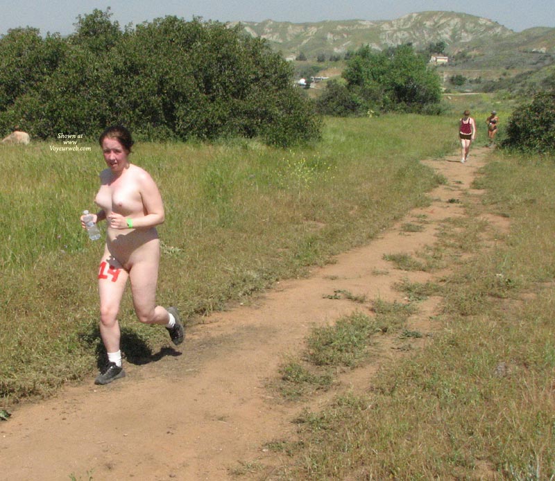 By the time this gets posted, I should be heading to San Francisco to run in the Bay to Breakers Run. Of course, I'm gonna be doing it wearing running shoes, socks and a smile. All y'all, think positive nice weather karma in the direction of the Bay Area. Forecast is calling for rain. Ugh! In preparation for the big race, Damien and I ran a 5K cross country race and I chose to exercise my right to exercise nekkid. Whoot! And guess what. I got second place in my age group. Give it up for φhi. And a big shout out to my local fans – Brandon from the Desert is my official 650th fan (ooh rah – YOU know what I’m talkin’ about), Irvine Max, San Francisco Lens (gonna see you this weekend, right), Modesto derf, Bay Area leon and Rancho Cucamonga sinner. And a few more from around the country – Bad Daddy from Alabama; riki and Sky from Florida; Illinois’ pieman and Chicago Dane (I know I already said hey, but you were #600 and I forgot to say something.); Iowa Max; Kentucky bigpaganjames; Mir and lefty from Massachusetts; Mike from Maine; New Hampshire Brock; Nevada vegasguy; Oregon Arnie (Are we gonna see you on the Streets of San Fran? Send me your cell # if you’re gonna carry it.) and from Washington State Greg M. (how could I possibly have missed saying hey to you G?). And internationally – 3sumcouple, rockyderek and Captain Ron from Canada and lucritiavirgia from Greece. The rest of you new fans are gonna be acknowledged in my Freestyles contribution. Oh, yea. New fans – I really need an email address if you wanna join. Come on, I’m wild, I’m crazy, but I’m not clairvoyant. Okay, I hope that this is short and sweet enough for you instant gratification types. Here come the pictures of the nekkid girl. {=D ~ φhi