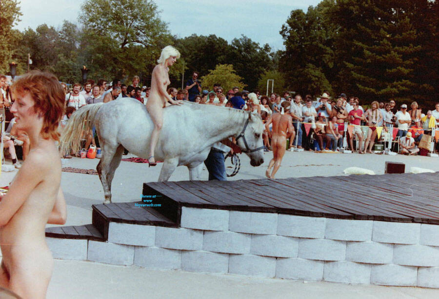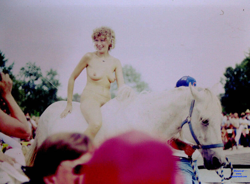 Contestants ride a white horse around the circle then they have the judges pick a winner.